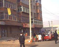 这是2003年2月1日(农历大年初一)清晨,在东北某市,飘扬市区街上高空中的数条真相条幅之一。