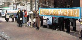 2月13日,纽约地区法轮功学员一早来到中国领馆前就美国公民、法轮功学员李祥春在春节回大陆探亲期间被无理拘捕一事举行抗议活动,要求中国政府立即释放李祥春。
