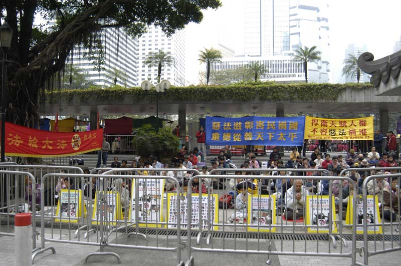中国中央政府把法轮功定性为“X教组织”,一直希望铲除法轮功的势力。但香港则允许法轮功公开活动,包括练功和抗议等。