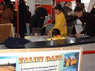 刚回到会场,有人打我的电话,原来是我邀请的一位朋友到了。看了大法的功法表演后,他希望下次社区活动时请我们去表演。陪着他一路走过我们的自助餐桌,他很惊讶,问我们是怎么组织的,这么多的人,这么多的食物。他的亲戚是这儿有名的组织者,操办过许多宴会和活动。