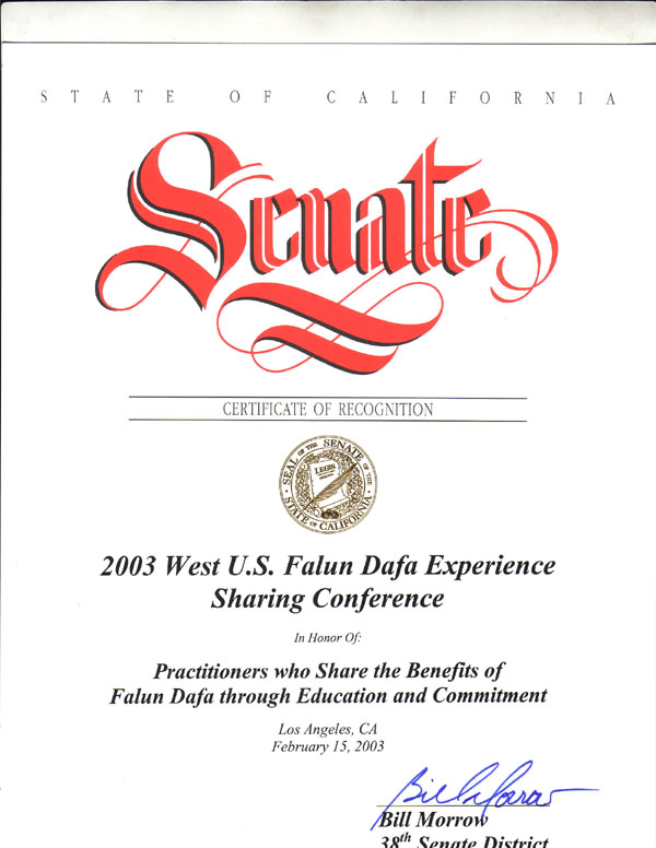 加利福尼亚州洛杉矶市2003年2月15日(签名)比尔-莫罗(Bill Morrow)第38参议区