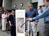 | 身为画家的大法弟子向两位来宾赠送了精美的传统中国画 | |