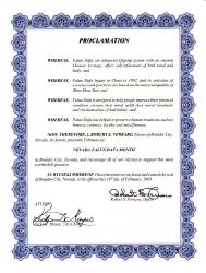 美国内华达州大石城(Boulder City)市长宣布2003年2月为内华达州法轮大法月。