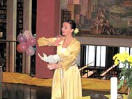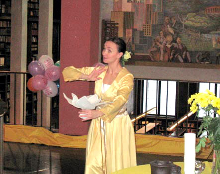 【明慧网2003年2月3日】2003年2月1日,正值正月初一,是为期六周的法轮功图片展在挪威奥斯陆最大的图书馆的最后一天。该图书馆与挪威大法弟子联合举办了一场中国传统文化日。瑞典与挪威大法弟子一起为观众们献上了一台精彩的文艺演出。大法弟子真诚、美好的表演给观众留下了深刻的印象。当一位学员自己作词作曲并亲自演唱歌曲“回家路”--献给中国大陆遭受的大法学员的歌时,有的观众流下了眼泪。
