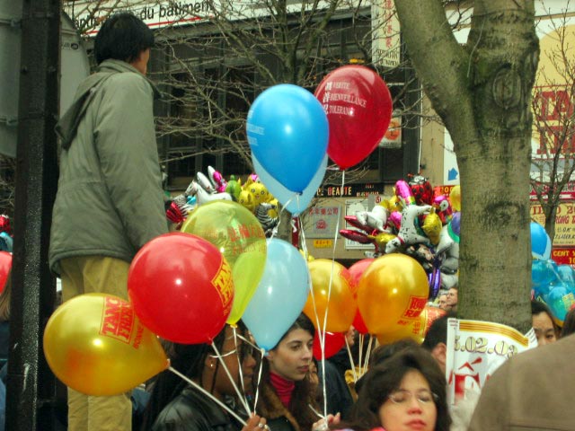 法国、比利时和台湾的法轮功学员经巴黎警方批准,在游行队伍经过的地方散发了数千份法轮功真相资料以及印有中法文“法轮大法好”和“真善忍”的氢气球,与大家分享节日的快乐。
