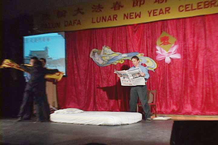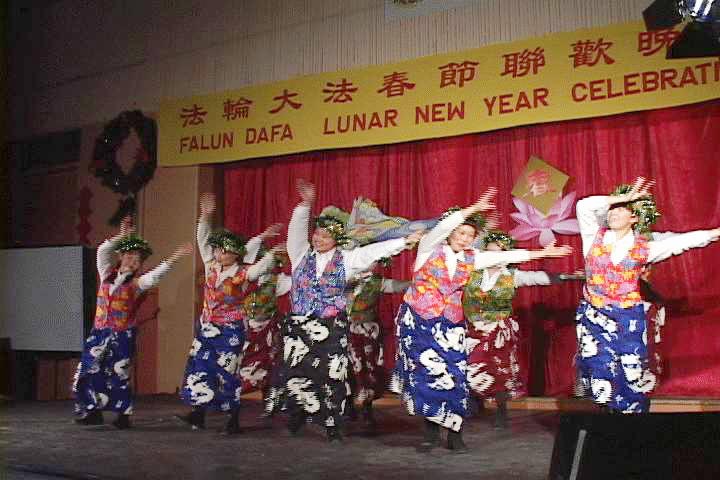 | 哑剧: 得法与正法之程 | 小品:八戒、悟空拜新年 | 合唱:可贵的中国人啊,你可知道全世界都说法轮大法好。 |