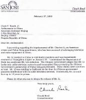 我写此信表达对美国公民,法轮功学员查尔斯-李先生在中国被关押的关注。他被指控破坏电视和广播通讯设备。