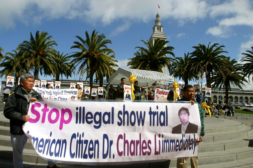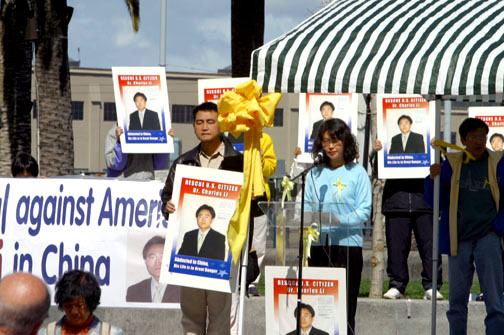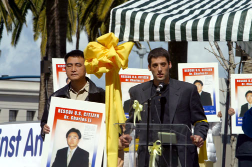追查迫害法轮功国际组织加州的代表 Leeshai Lemish 在发言中说:中国政府趁美国忙于战争之机,决定于3月21日审判美国公民李祥春。在实施“不计一切代价铲除法轮功”的政策下,这样的审判只能是‘作秀’!在中国,对法轮功学员没有法律可言。中国法律是为关押有信仰的人士披上一个合法的外衣。现在,美国人又成了它的目标。