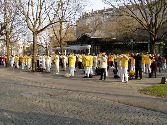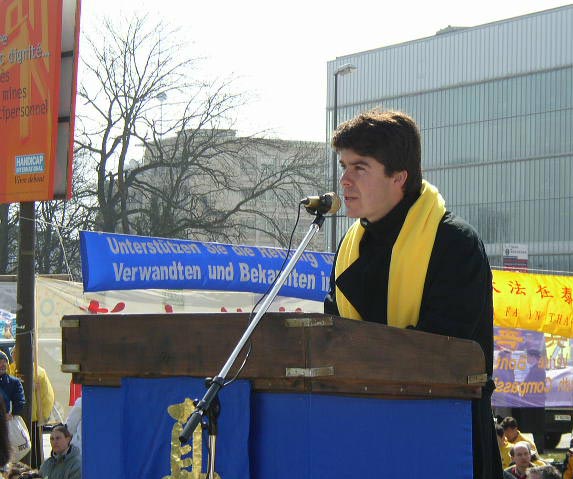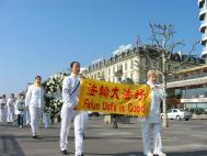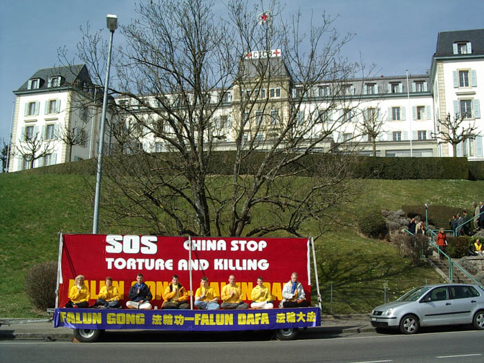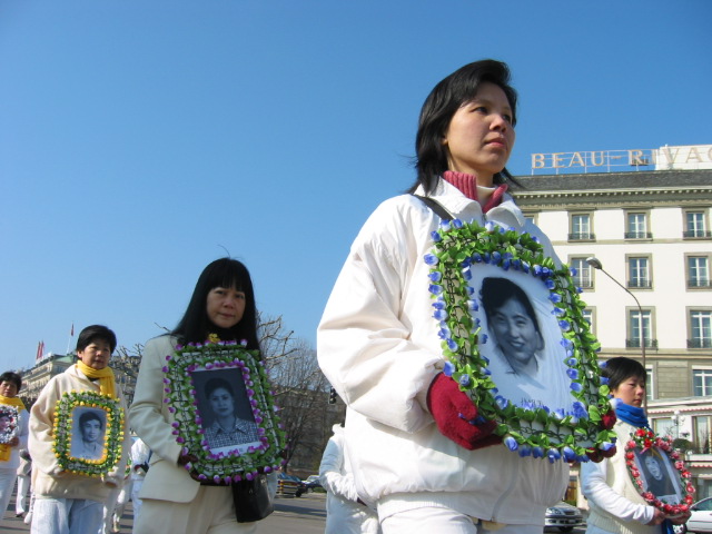 虽然日内瓦当局发布了禁令,不过,中国的精神运动法轮功仍然举行了游行,抗议北京当局的镇压。上午这一运动的支持者穿过日内瓦市区,从堡垒(Bastion)公园到万国广场(Place de Nations),揭露(北京当局)四年的迫害。