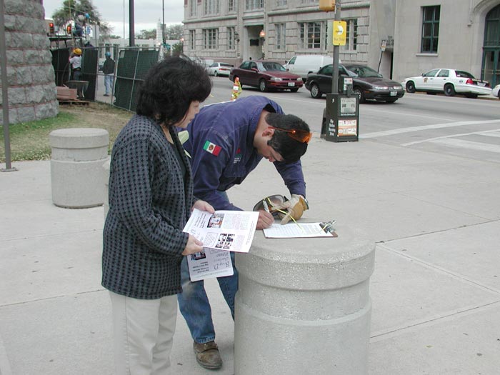 中国政府无理扣押美国公民的行径,已引起了美国人民、政府官员及议员们的强烈反感。一位学员当众宣读了两名国会议员就即将进行的“审判”闹剧的信,在信中他们表达了对此事的深切的关注,请大使先生尽一切努力帮助此事。接着,另一位法轮功学员也向人们讲述了他的同学、朋友、一位才华横溢的学子在因修炼法轮功在中国大陆遭受迫害的事实。