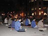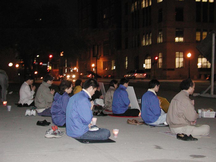 傍晚时分,忙碌了一天的学员们再次纷纷驱车赶来这里。在广场上,点上一支支蜡烛,然后静静的、全身心的发正念,此时正是中国的21日早上。没有语言,只有我们强大的正念,清除另外空间的一切邪恶,助查尔斯安全归来!