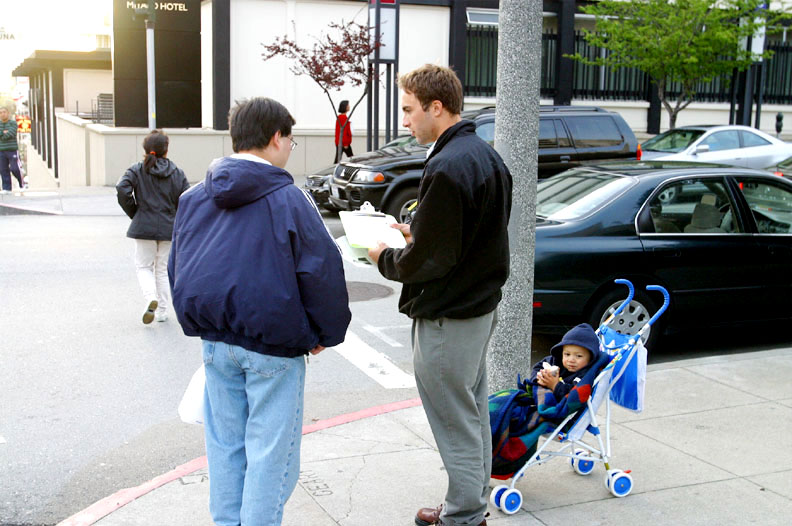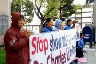 【明慧网2003年3月22日】北京时间3月21日是江氏集团非法审判美国法轮功学员李祥春的日子,在同一时间的美国西部,李祥春家乡的100多位朋友和法轮功学员在旧金山中领馆前举行了大规模的抗议活动,抗议中国江氏集团趁美国开战之机,在没有任何证据的情况下,非法审判美国公民李祥春。