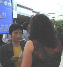 星期天下午,大约12个人参加了在位于第20街和第59大道间的法尔图书馆举行的活动,了解法轮功的三个主要原理:真、善、忍。
