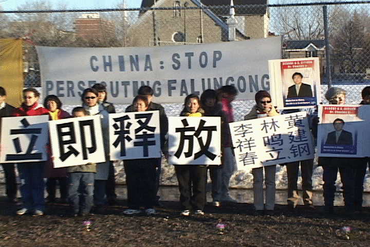 世界日报3月23日报导,为营救甫遭北京当局判刑3年的美国公民李祥春,一群法轮功学员从昨天上午10时起,到中领馆前展开连续48小时的守夜练功请愿。李祥春被北京当局指控意图破坏电视台,插播法轮功宣传影片。北京当局在21日当天判处李祥春,需服刑三年,李祥春被定罪的证据是手电筒、地图和CD唱盘。