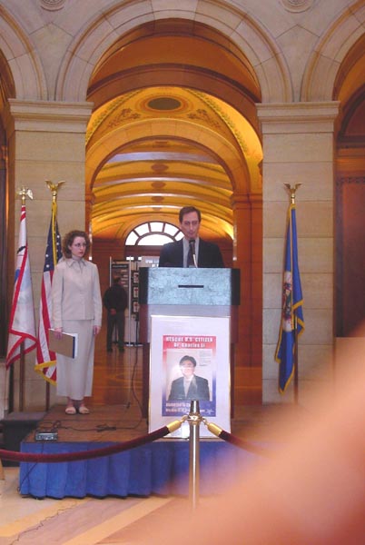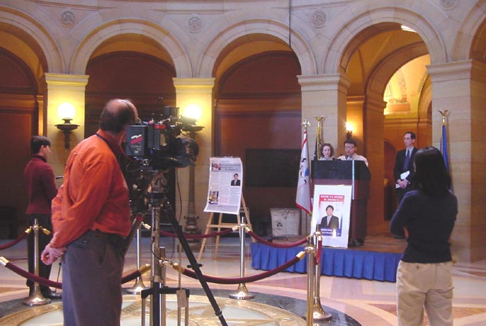 图片报导:明尼苏达州法轮功学员在州府大厅举行新闻发布会,呼吁营救李祥春