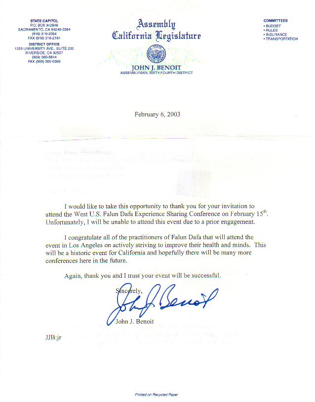 政府有关部门由于同修们过去三年多的不断讲清真相,对大法及在中国的迫害都已有了一定认识。在帮助他们进一步了解真相,认识到停止迫害的迫切性,从而采取更有力的行动来帮助停止这场迫害。大家都从明慧的报导中看到了一个又一个从加拿大传来,营救成功的振奋人心的消息,及加国政府最近有关谴责中国迫害法轮功学员的动议。这与加拿大同修在用营救这个角度向政府方面讲真相的努力和紧密配合是分不开的。在美国和其他地区,我们也开始得到些不同的积极反馈。如有的学员在与联邦议员助手面谈时,反馈是:“当然呼吁、谴责十分重要,现在我们感觉可以帮你们做点什么了”。“我们的居民的亲人在遭难,我们不能坐视不管”。有位联邦议员的主管助理听完我们学员面对面讲述家人受迫害的情况后,拍案而起,立即拨通中国大陆有关劳教所的电话、严辞谴责。可以看到,当人的善念、正念被大法弟子的大善大忍所感动,被“真、善、忍”唤醒的时候,他们就会主动行动起来帮助停止迫害,为自己创造美好的未来。