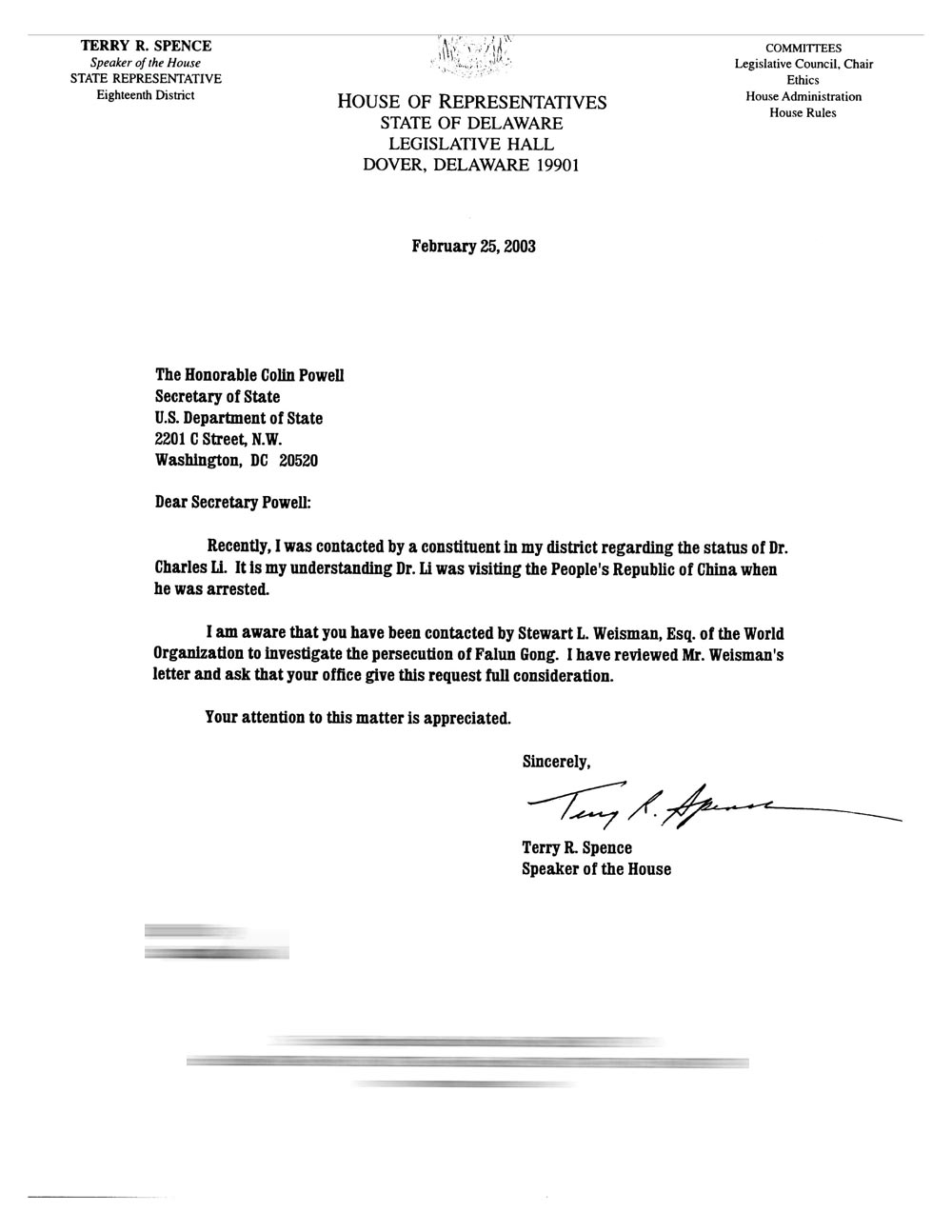 去年十月中旬,营救小组的部份学员到德州,与当地学员一道在休士顿、达拉斯、澳斯汀等中心城市轮流约见政府官员,参加市议会的例会,召开新闻发布会。澳洲的戴志珍,加拿大的林慎立,美国的王小丹等学员用他们互成鲜明对比的自身经历与家人的苦难,告诉德州政府及民众,法轮大法好!告诉人们有这样一群来自中国以外、世界各地信仰“真善忍”的人,他们中间就有不少北美的居民,就有德州的学生及居民。他们的至爱亲朋因信守“真善忍”而在中国遭到血腥镇压,对法轮功的迫害事实离我们并不遥远。这场迫害的始作俑者要来造访德州,它是这样一个厚颜无耻的小人,血腥暴政的恶棍,请大家一同呼吁布什总统关注法轮功在中国受迫害的问题;呼吁大家一同来帮助营救我们的亲人。
