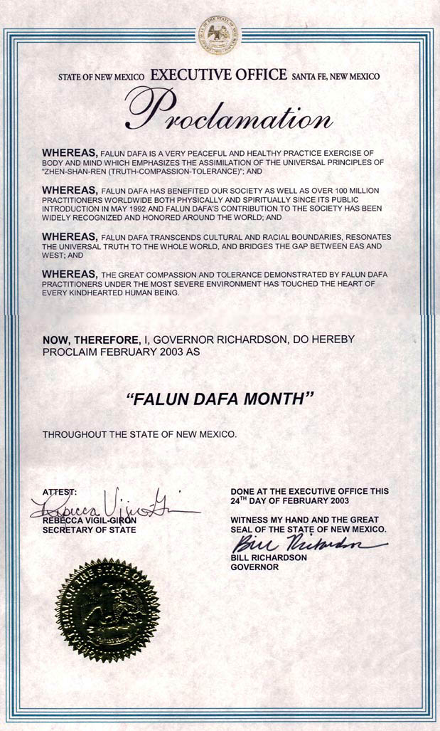 2003年2月24日于行政办公室签字并加盖新墨西哥州大印,以此为证。