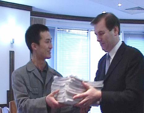 每当我们走进一个办公室,告诉工作人员:“能否请你将这份法律文件转交给国会议员?这是有关起诉中国卸任领导人江××的诉讼文件。江××对‘法轮功’犯下了群体灭绝之罪。”那些工作人员的脸上先是震惊,然后充满了正义。都很痛快地接下文件并告诉我们:“我一定会很快为你们转交的。”