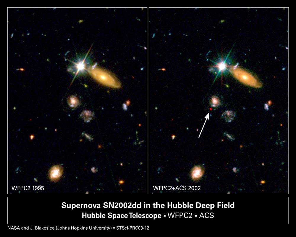 哈勃ACS图像清晰、敏感度高,视野宽阔,通过对超新星的研究,天文学家正试图研究宇宙膨胀速度从减速向加速的转换,同时了解宇宙膨胀的整个过程。