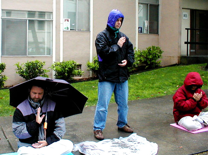 4. 营救李祥春──纽约非裔法轮功学员静坐五天请愿 加拿大法轮功学员中使馆前抗议(图)