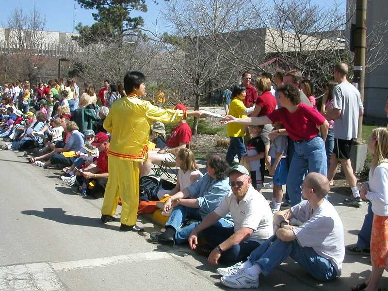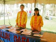 负责大法展位的学员遇到不少中国人向学员友好地微笑点头,许多人主动上前攀谈。一位中国女士特地走过来说,“你们法轮功的游行(队伍)每年都办得很好!”一位中国男士讲到,他认为法轮功被镇压是因为“真善忍”的理念与中共所行的那一套正好相反。当提到起诉江XX时,他说:“是该把它绳之以法!”另一位学生模样的中国人在一旁提醒我们要小心中共特务:“我是不敢象你们这样做的[指我们堂堂正正参加公众活动,揭露迫害,但是我挺佩服你们的勇气。”还有的中国人赞叹说走到哪里都见到法轮功。而我们所遇到的美国人无一例外地都对法轮功表示支持,对我们在中国所遭受的镇压表示同情。