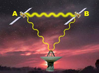 “量子缠绕”是科学家们在微观粒子世界中发现的一种神秘的现象。处于量子缠绕态的粒子,相互之间似乎“心有灵犀”,无论相距多远,对其中一个粒子的干扰会瞬时地影响到量子缠绕态中的其它粒子,也就是说这种关联的传播好像不需要时间。这显然违反了爱因斯坦的狭义相对论“光速不可逾越”的结论,因此当初他从量子力学理论中推导出这一结论时,他并不相信这种现象真的存在,而是试图利用这一结论来证明量子力学的不合理,并称之为“幽灵式”的联系。但是后来的实验证明这种量子缠绕现象的确是存在的,它是目前热门的量子超光速传输研究的基础。