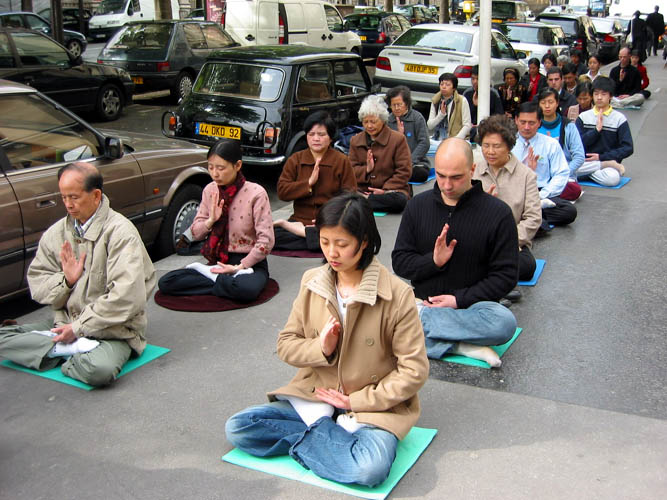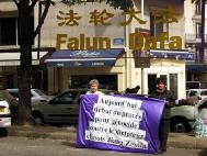今天,很多人都主动来问学员在干什么。学员们告诉他们:江XX集团违背天理、颠倒人间是非、灭绝人类良知,对信仰真、善、忍的善良和平的人们进行血腥迫害,今天法轮功学员以反人类罪、灭绝群体罪和酷刑罪起诉之以伸张正义。