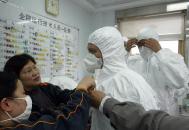 ![]() 4月17日一名西方记者“全副武装”准备进入北京地坛医院SARS隔离病房采访(法新社) |