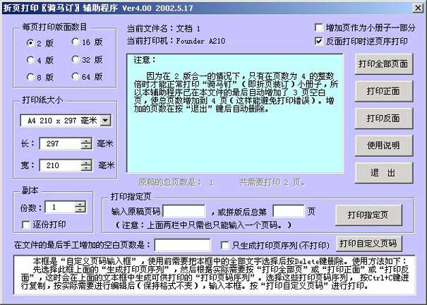 首先,你的电脑里必须安装了Microsoft office2000,然后装上一个“骑马订”打印软件QMDPRINT,只需要把QMDPRINT直接复制到C:\Program文件\Microsoft office\office\startup目录下即可。