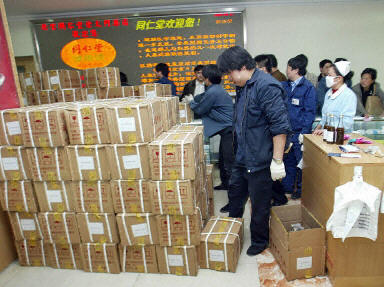 ![]() 北京一家药店大批供应据称可防萨斯的中药(法新社图) |