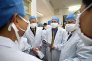 | 4月23日,世界卫生组织官员詹姆斯-马格瑞(左,James Maguire )在上海一军区医院考察。(法新社) | 4月23日上海传染病医院。(法新社) |