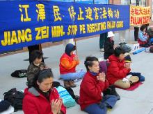 【明慧网2003年4月27日】四月二十五号上午九点至下午三点,纽约部分学员在中领馆前举行活动,纪念“四. 二五万人上访”四周年。