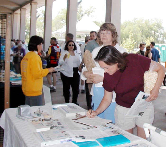 【明慧网2003年4月30日】4月26日,密苏里州圣路易市学员参加了在森林公园举办的一年一度的“地球日”活动。 大法展位和祥和的炼功吸引了众多的目光。很多人纷纷前来索要资料、炼功点讯息,还有人当场学功。学员们向游人讲述了江氏集团迫害大法的罪行。很多人在呼吁营救美国公民李祥春和释放所有被非法关押的法轮功学员的信上签名。