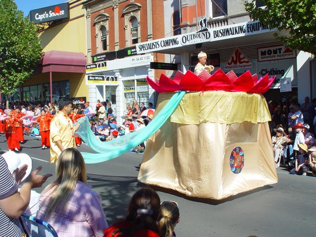 在今年的活动中,墨尔本法轮功学员的队伍在近百个参加团体中脱颖而出,分别赢得了4月20日晚火把灯笼节的“最佳社团参与奖”及4月21日白天盛装大游行的“最佳主题表现奖”。节日庆典评委会认为,法轮功学员的唐装表演真实地再现了中国传统文化中的黄金时代,而象征着驶向“真善忍”金色未来的大型编织艺术品“风帆”又很好地表现了“金色的未来”这一主题,因而将本次“黄金的过去,金色的未来”的复活节庆祝活动的“最佳主题表现奖”授予学员,以表彰学员们对于本次活动的卓越贡献。