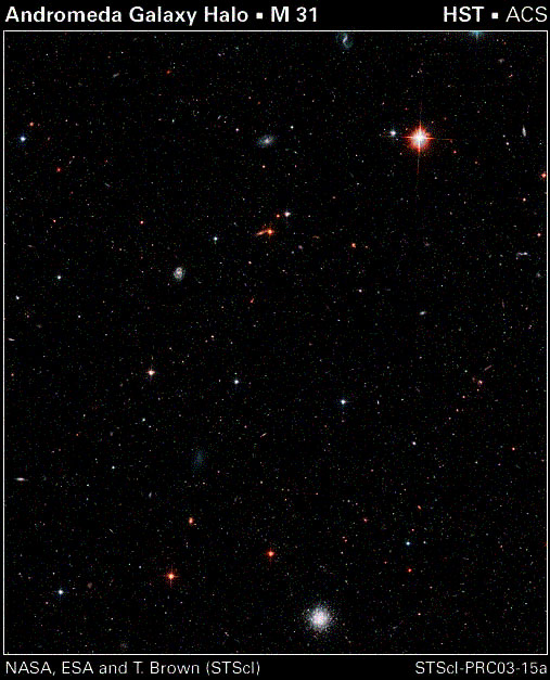 ![]() 哈勃望远镜对仙女座周围光圈的深场影像 |