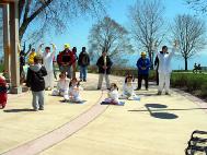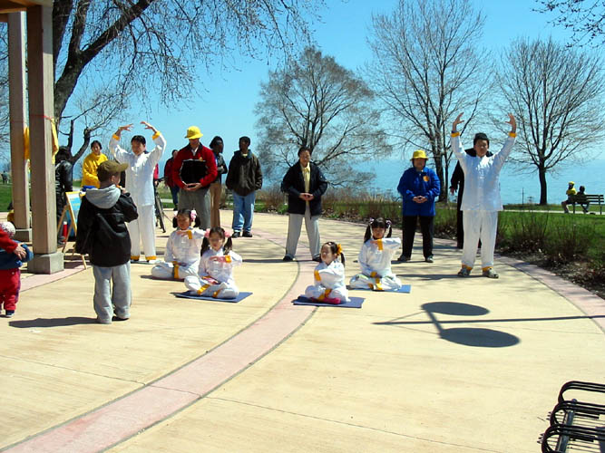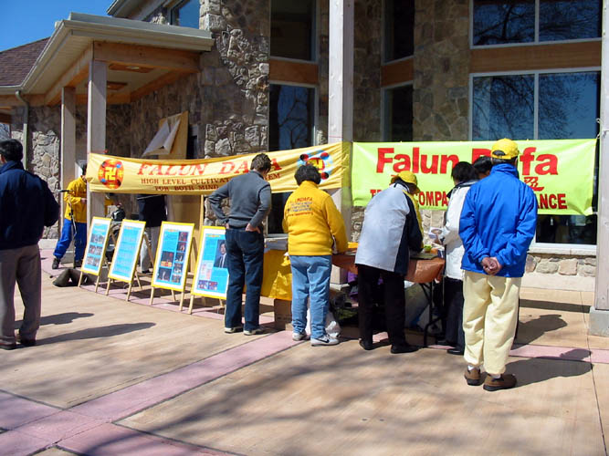 【明慧网2003年5月11日】五月四日,法轮功学员应加拿大安大略省阿积士市(City of Ajax)之邀请,参与「阿积士市环境事务周」介绍法轮功和演示功法,推广法轮功有益身心之道。大法展位和明慧学校小弟子穿着整齐漂亮的炼功服炼功吸引了众多的目光。很多人前来索取资料,众人都感受到功法的祥和,还有人当场学功。是日风和日丽,学员和市民欢度了美好的一天。