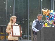 庆祝活动从上午十点开始。前来参加庆祝活动的密西根州议员(House Representative)阿尔多-法格诺兹(Aldo Vagnozzi),代表密西根州长珍妮弗-格兰贺姆女士(Jennifer Granholm)宣读了关于将今年五月定为法轮大法月,和将以后每年的五月十三日定为密西根法轮大法日的决定: