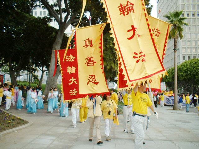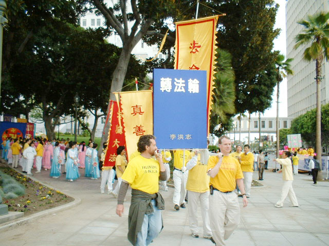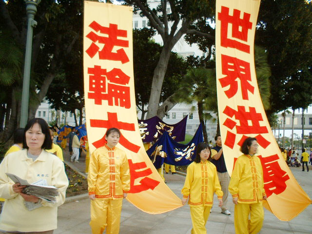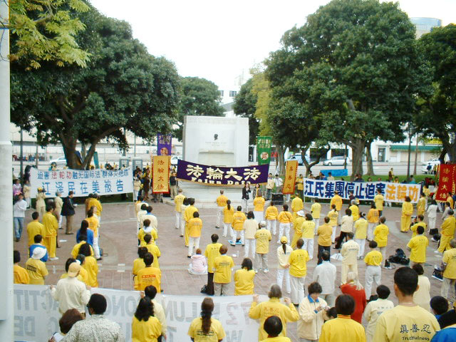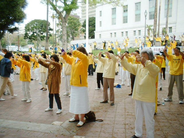 2003年5月5日,美国加州大法弟子应邀走进南加州尔湾大学课堂,向学生们介绍法轮大法。学员简单介绍大法后,大学生们分成了四个小组,由法轮功学员教功。这些年龄不等、肤色不同的学生们个个学得认真,十分投入。