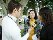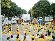 5月5日至8日,韩国大法学员在一年一度的韩国花卉博览会上讲真象,主题是营救同修李祥春和支持审判江泽民。优美的炼功音乐和缓慢柔和的动作招来大量游客驻足欣赏。有的同修干脆带着征签簿走到川流不息的游客中间或树荫下小憩的人群中征集签名,当游客们明白了我们在做着营救亲人和扬善惩恶的事情时,他们便很高兴地签上了自己的名字。