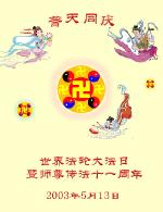 5月13日,是天上人间的辉煌圣日。为了祝贺师尊的生日,庆贺法轮大法洪传十一周年,世界各地的大法弟子都在以各自的方式庆贺这一神圣的节日。 飞天舞恭祝师尊华诞暨世界法轮大法