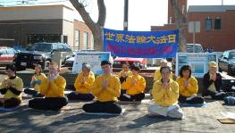 2003年5月10日,近百名美国密西根州、加拿大温莎市法轮功学员与其亲朋好友,在布伦菲尔德市(Bloomfield)图书馆,举行5月13日世界法轮大法日的庆祝活动。法轮功学员们并衷心祝愿师父生日快乐,感谢师父无私地将法轮大法公诸于世。