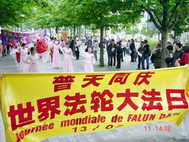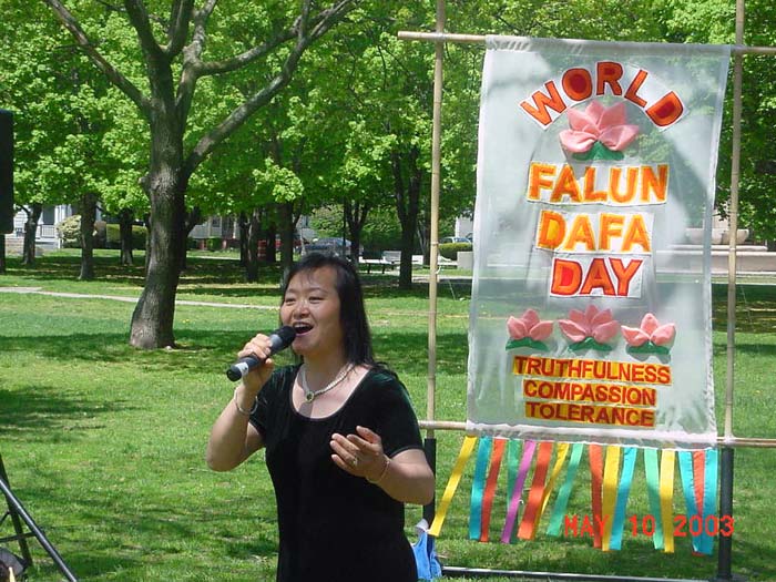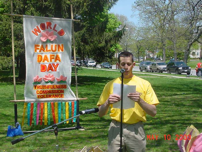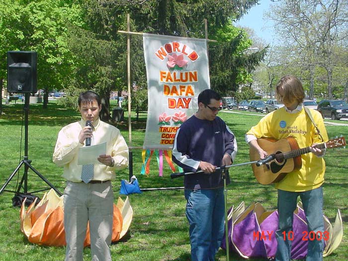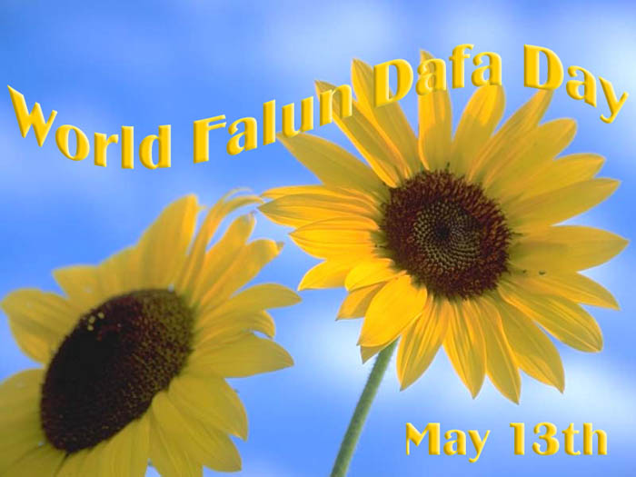 三年前(2000年)的5月13日,为纪念师父首次传法,为让人们进一步了解法轮大法,为呼吁尽快停止对法轮功的迫害,在世界各地学员的倡议下,经当时全球的十几个法轮佛学会共同协商,决定将每年的五月十三日定为“世界法轮大法日”。