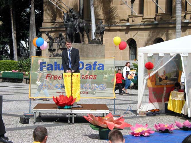 密西根州议员(House Representative)阿尔多-法格诺兹(Aldo Vagnozzi)前来参加庆祝活动,宣读将今年5月定为法轮大法月、每年的5月13日定为密西根法轮大法日的决定。