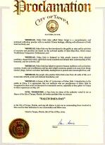 因此,我,帕姆-爱瑞,以佛罗里达州坦帕(Tampa)市市长的名义,在此宣布2003年5月10日为佛罗里达州坦帕市