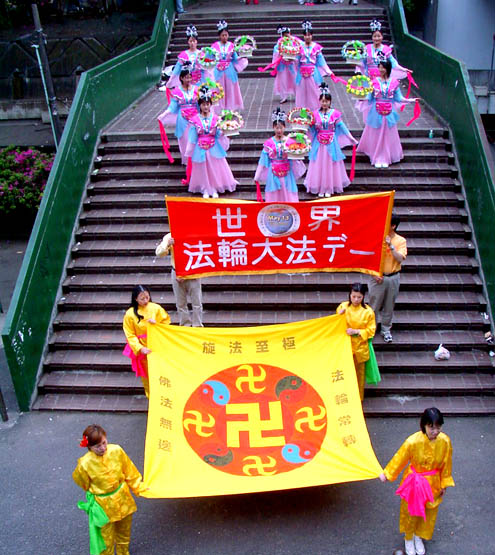 5月11日是日本弟子庆祝世界法轮大法日游行的日子。午后1点,隆重的庆祝游行从东京最繁华中心之一的宫下公园开始。