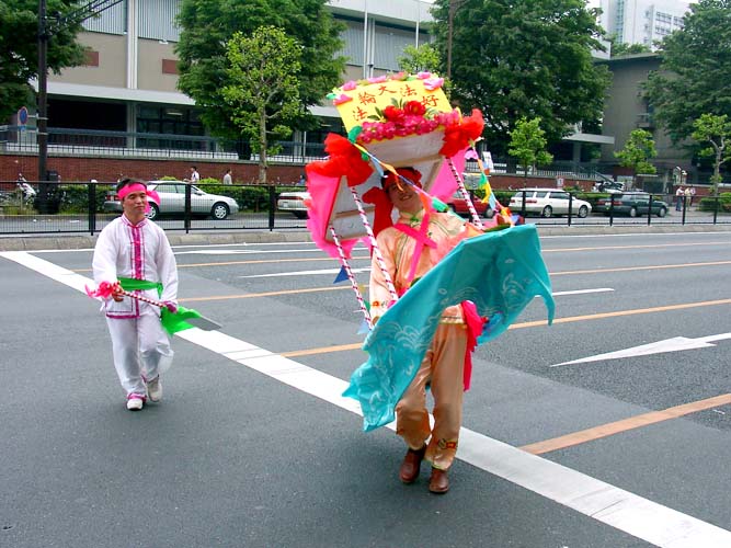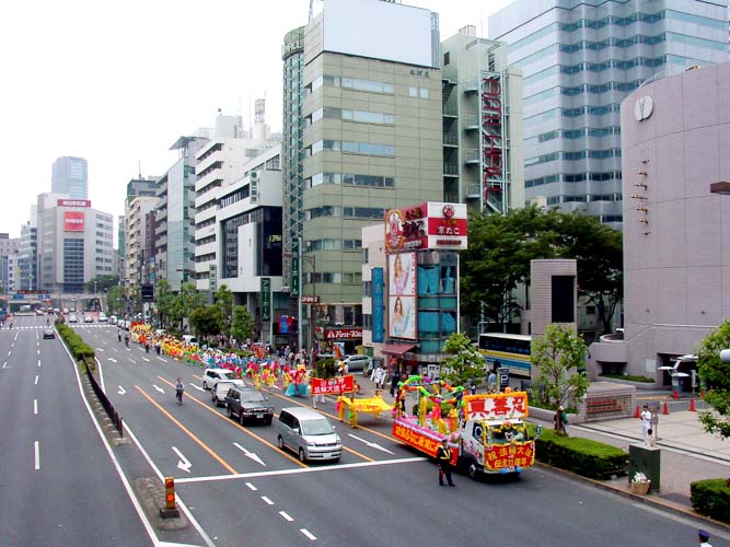 行进的路线,正好是东京国际性特色浓重的一带,NHK附近又在举办国际性美食节,加上周日,往来的日本民众和各国人士熙熙攘攘,从弟子们排练开始,就不断有各国人士追随着我们拍摄,具有浓重中华民族传统特色的服饰和舞姿,特别是大法弟子祥和、欢快的氛围,感染着人们。