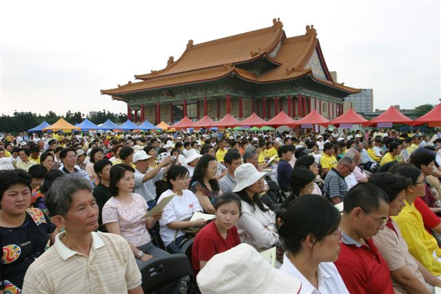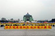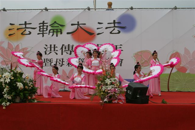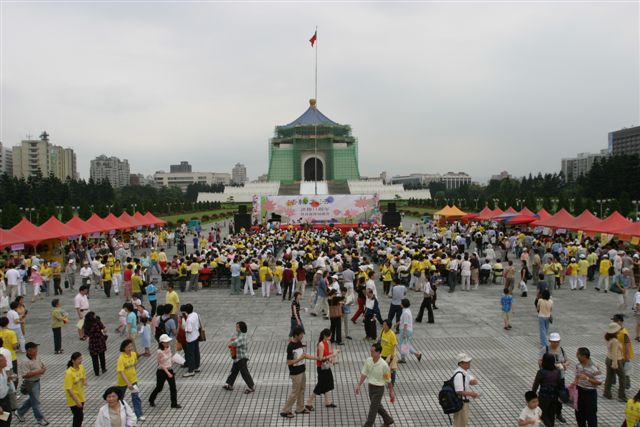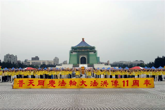 5月11日,台湾法轮功学员于台北中正纪念堂广场,以炼功洪法、园游会、音乐会、图片展等方式,庆祝法轮大法洪传十一周年。台湾近来受到SARS影响,大部份大型活动都取消了,但这次活动民众参与相当踊跃,很多人当场学炼功法;近百个摊位的园游会,人潮络绎不绝,各式食物、饮料、杂货等也都销售一空;工作人员利用部份摊位播放真相影片、在摊位背面挂图片展,效果很好。音乐会上高朋满座,精彩的表演,让民众见识到大法弟子多才多艺的另一面。