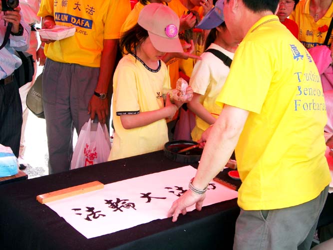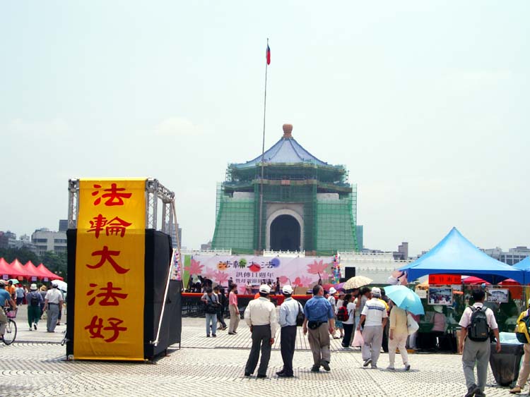 三个多小时的车程来到中正纪念堂广场后,之前的疑虑便一扫而空。广场上熙熙攘攘满是来往的人群,原本朋友电话中告知已经连日阴霾的台北市天气,也放了个大晴天,广场上的台北市民似乎也感染了大法弟子的活力与大法日喜庆的气氛,放下了行色匆匆的神情,纷纷驻足、观赏功法表演活动,或排队等候由中西医师学员提供的免费健康咨询服务,或悠闲地逛着园游会各式各样的摊位,或聚精会神细心观看一幅幅真相纪录图片,更有外国女孩在看完集体功法表演之后,向我们询问是否有英语人士可参加的炼功点。