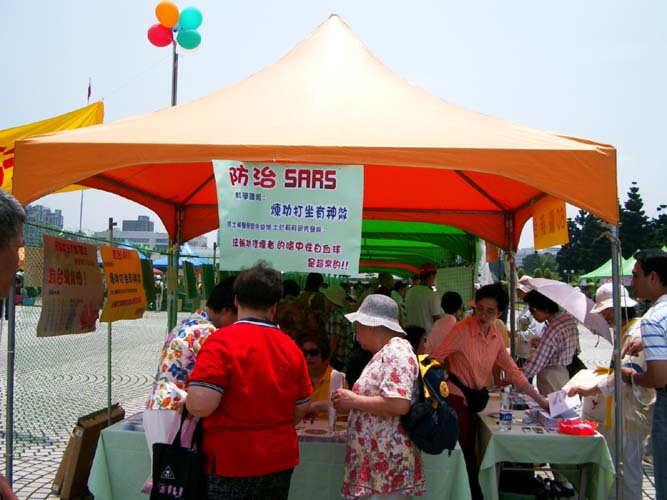 出发的前一晚,我拨了几通电话给住在北部的亲戚朋友,母亲告知我说不用回台北,心意到就好,而朋友们则戏称我是在“深入疫区”,原来台北地区受这一波SARS风暴的影响,许多人都尽量减少了户外公共场所的活动,也有许多预定的活动取消了举办,我的心一沉,心想这样大法的活动可怎办?但又转念一想,活动多少人来参加并不是重点,如果在这样一环境下,人们能来听闻大法,不就等于是给了他一个得度的机会吗?人在性命攸关之时,若能去思索一下自己存在的意义,不也是个生命的一个转机吗?